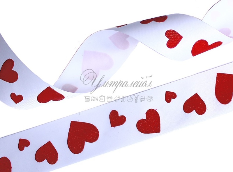 Лента "Сердечки большие", белая