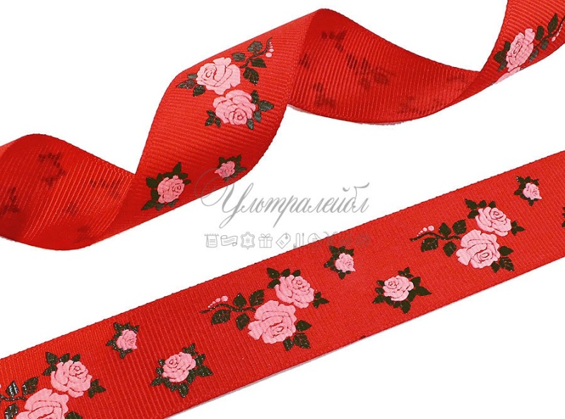 Лента с узором "Цветы", красная