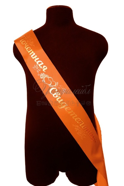 Лента свидетельницы - апельсиновая с золотом